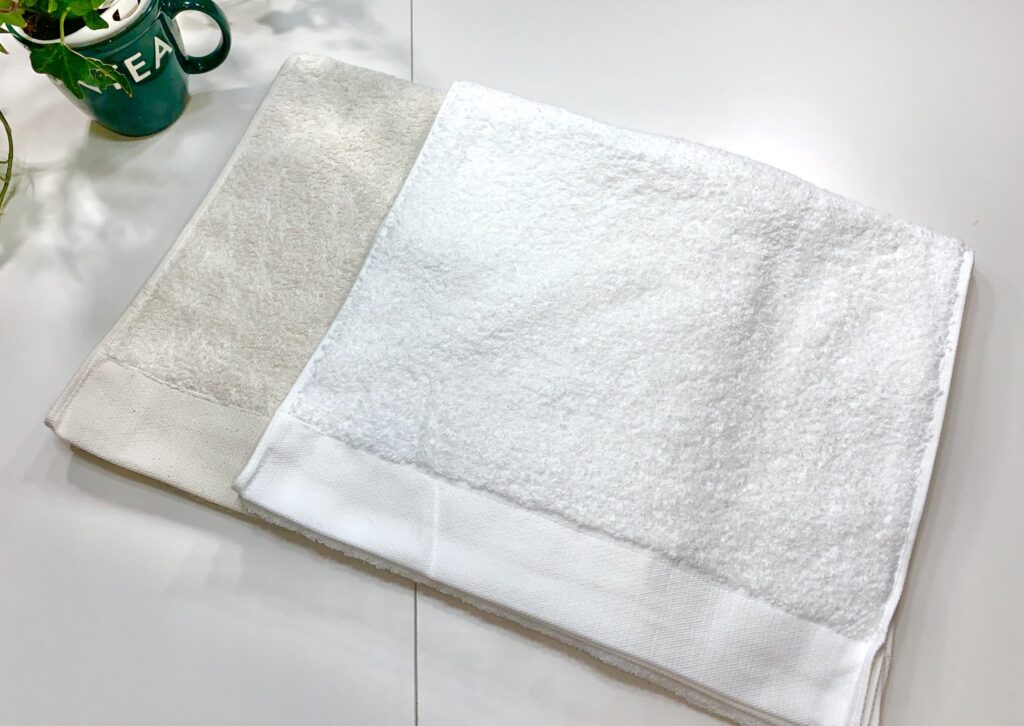 このスマートバスシリーズは、増販の度にヘムの色糸を試したり、マイナーチェンジをしていました。今回のカラーは、お客様との会話から考えられ、私の今までの販売経験により、皆様が好む色彩の傾向と、泉州タオルの製造方法でも可能であろうと思われる色との融合を目指しました😃