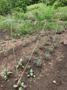 今日は午前中に、この前植えた苗の支柱をこさえてみました😆