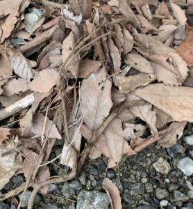 こんな落ち葉が溜まった下にアリの巣はできるようです。