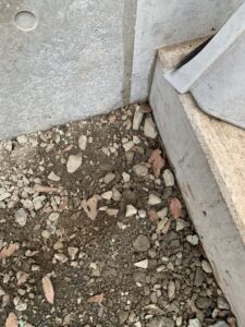 この角に溜まった枯葉を退けて、アリアースをスプレーした後の写真です。