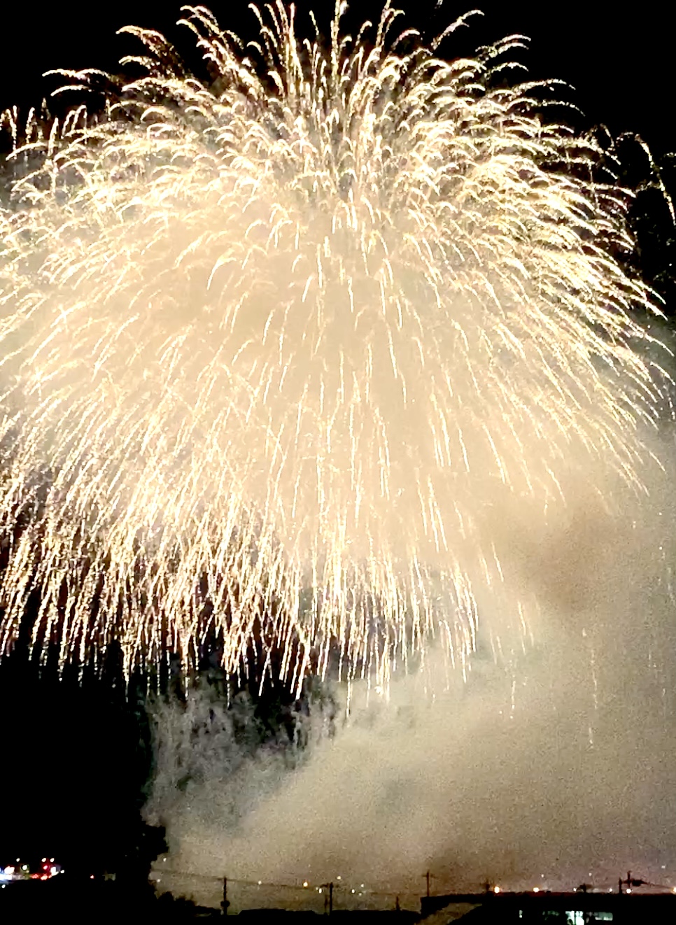 妻と、娘と、祖父母と一緒に祖父母の家のベランダより間近で見物してきまーす🎇🎆😆