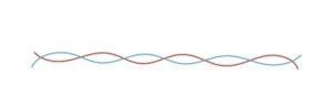 図1の青い糸と赤い糸を撚って、1本の糸に形成しているのが双糸です。