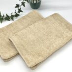 精錬後に残ったオーガニック綿糸が20番手という事ですので、精練前の水溶性の糸と双糸に織り上げた状態では、「10番手」位のタオルだったと思われます。