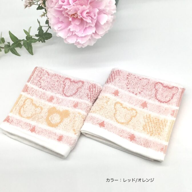 ジャガードシリーズは、全3サイズ(バスタオル・フェイスタオル・ハンドタオル)で、カラーは3色(レッド/オレンジ、ピンク/グレー、イエロー/グレー)で取り揃えております。
