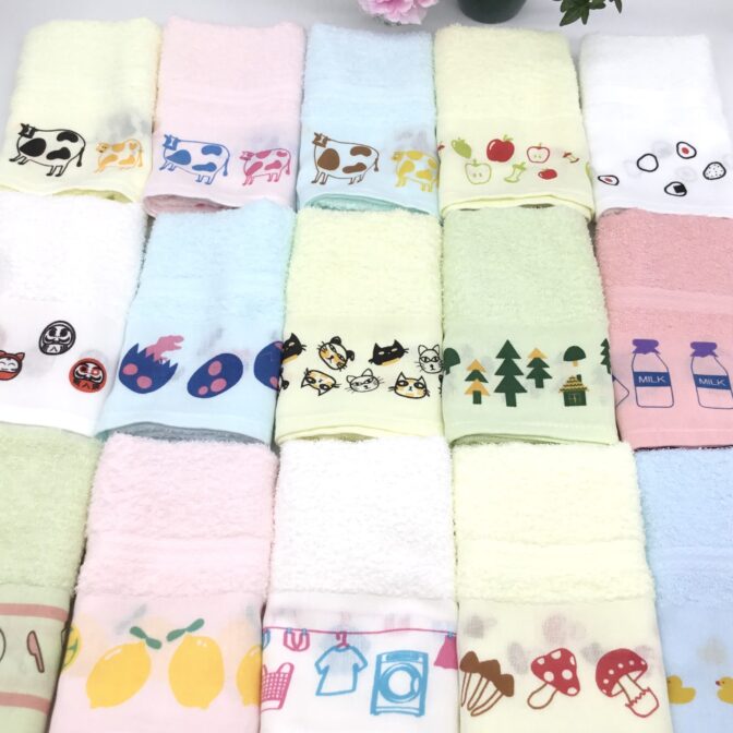 くまさんのタオルでは、白無地以外にプリントした温泉タオルをオリジナルで販売しております。
